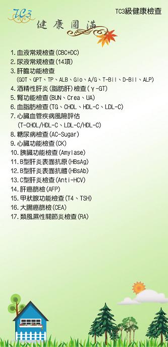 【TC3級健康檢查-健康圓滿】