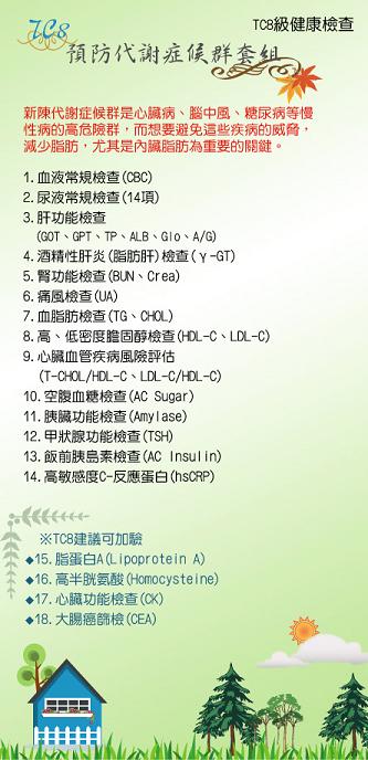 【TC8級健康檢查-預防代謝症候群套組】